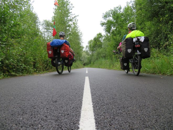 The light rain started during the night and remained with us the next day. It’s the best weather for a cyclist. Refreshing and not enough to make you wet. In the afternoon the sun come back and completely wet (from sweating) we stopped early in front of a camping with the sound of kids splashing in the swimming pool. The 4-star camping would have been perfect without the music from a party next to it until 2h30 followed by the noise of the gas getting out of the bottle from our neighbor caravan (Eva eventually got up and closed the bottle, which had lost its connected hose).
