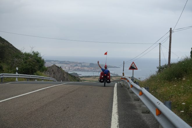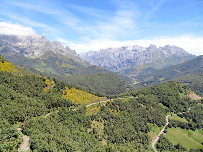 …des montagnes, des vraies ! Les Picos de Europa. C’est surprenant, c’est magnifique, ce sont ces moments où voyager à vélo vaut vraiment la peine. Nous terminons la journée en empruntant une magnifique route nationale où nous sommes presque complètements seuls, en plat descendant la plupart du temps et avec de belles vues, et qui nous amène en Asturias.
