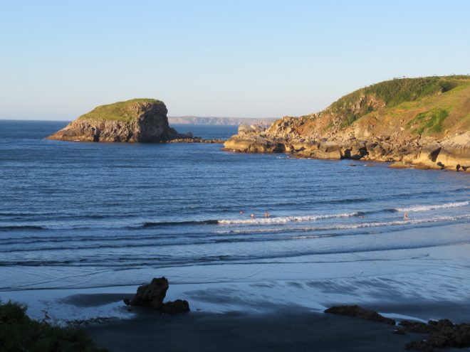 On ne traine donc pas trop longtemps, en plus il y a un vent assez fort venant de la mer. On quitte Gijón en direction d’Avilés, par une route poussiéreuse et une région qui semble très industrielle. S’en suit Avilés et son Centro Niemeyer. Puis quelques kilomètres jusqu’à un camping en bord de mer, qui coûte autant que le camping première classe mais où il faut payer pour la douche chaude… Mais nous avons un emplacement tranquille avec vue sur la mer, et une petite plage à 1 minute pour le bain du soir.