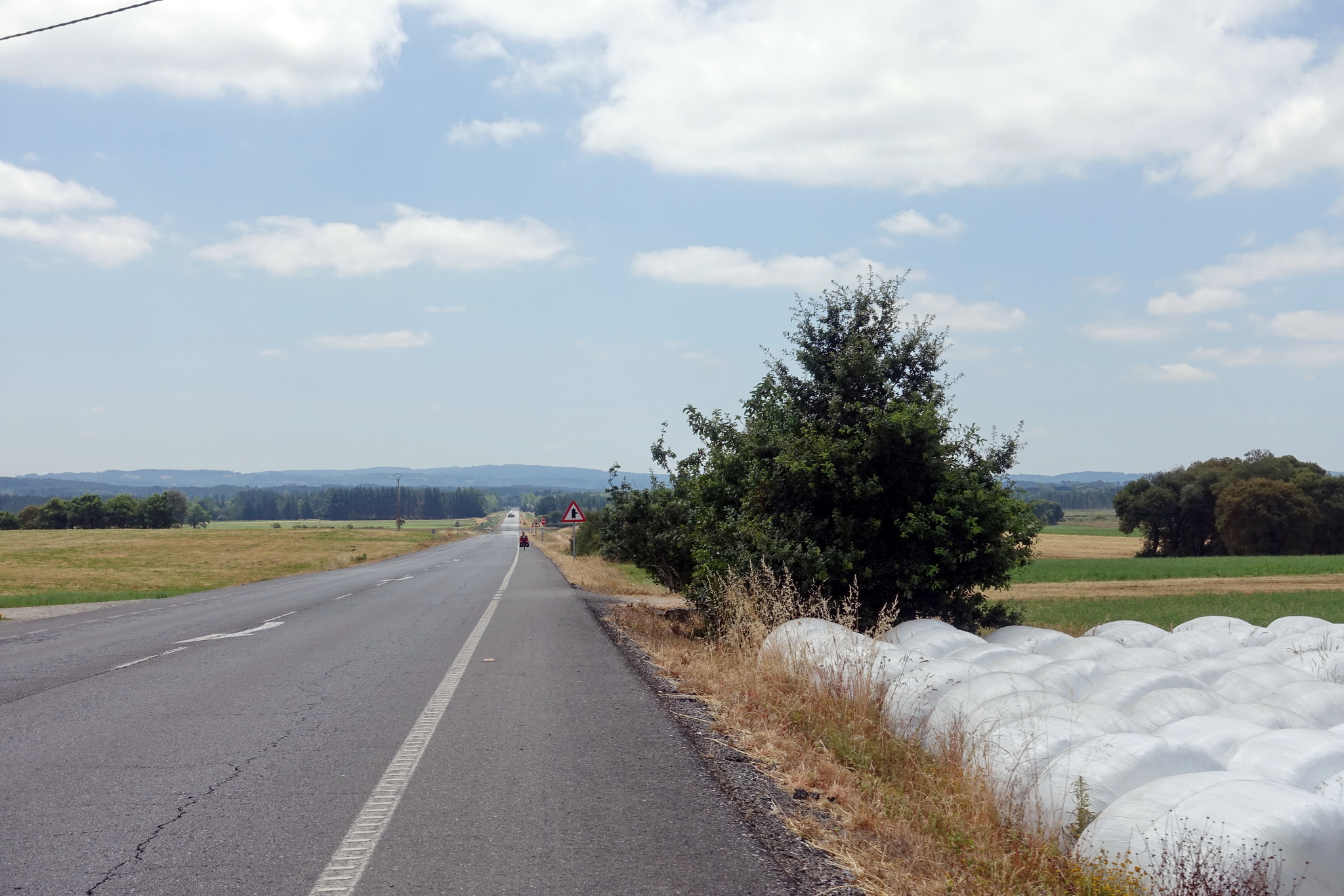 La route devient vite plate, c’est fini les descentes dans les vallées. Nous avançons donc plus vite que prévu et passons en Galicie en début d’après-midi, par un pont autoroute-piétons.