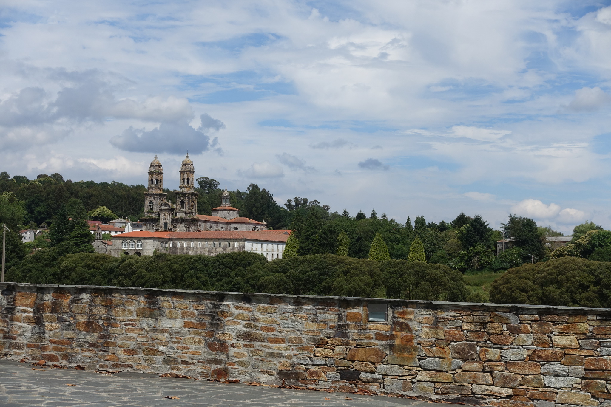 La montée le lendemain n’est pas aussi difficile qu’attendu, c’est une route large et tranquille qui monte assez doucement. Après cette montée nous décidons de dévier un peu du Camino pour rejoindre Lugo, petite ville connue pour sa cathédrale et ses murs romains héritage Unesco. Pour y arriver nous empruntons une route de campagne toute droite.
