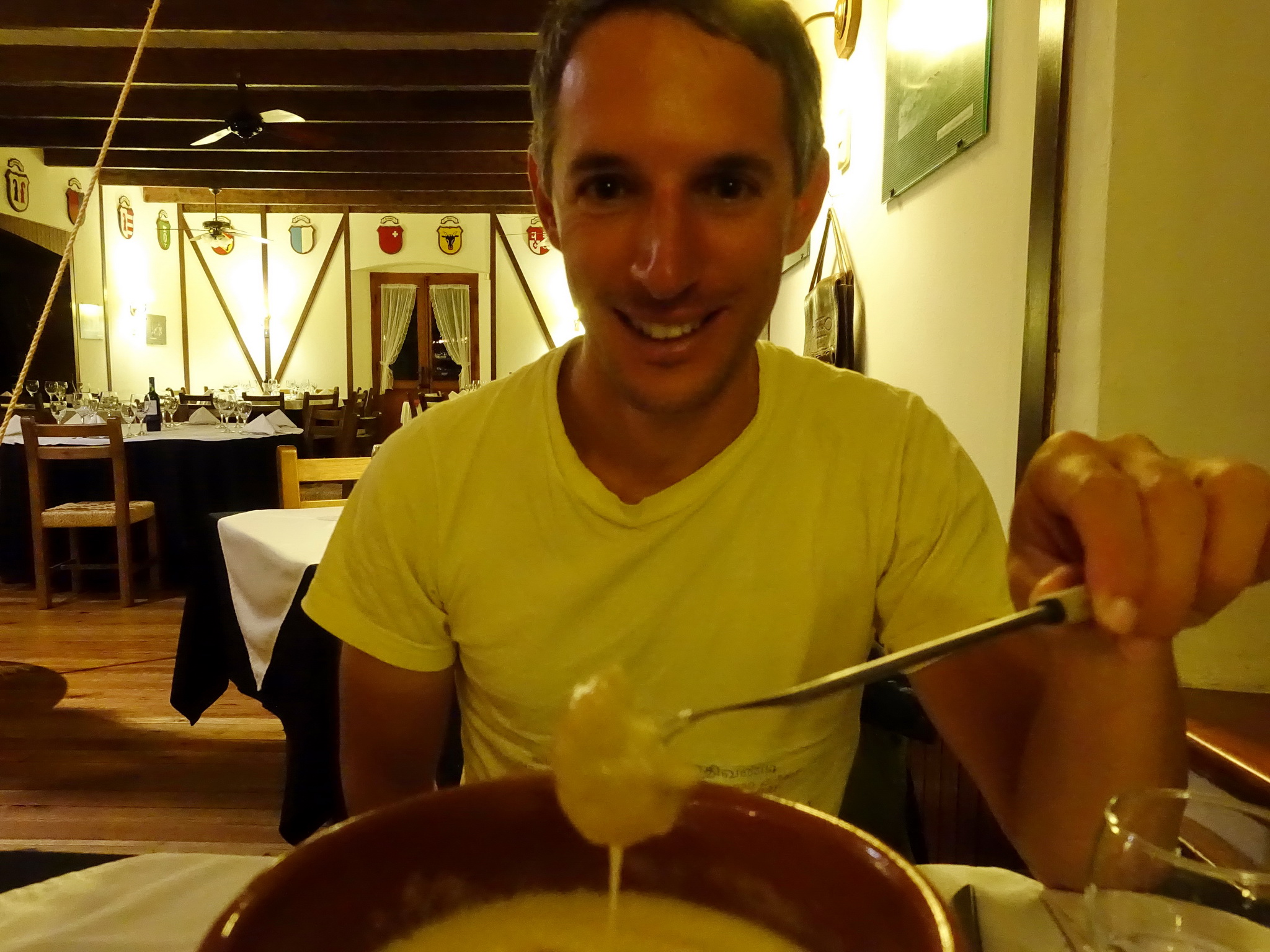 En début de soirée nous arrivons à Nueva Helvecia, anciennement appelé Colonia Suiza. Ce village a été fondé autour de 1860 par des immigrants suisses et ils ont préservé certaines traditions suisses : ils produisent du fromage connu dans tout l’Uruguay, ils mangent de la fondue, et apparemment ils font une grande fête le 1er août. Beaucoup de maisons portent le drapeau du canton d’origine de la famille. Nous nous installons dans un hôtel qui se trouve à l’endroit d’une ancienne brasserie fondée par un suisse, et commençons la saison de fondue au restaurant de l’hôtel Suizo.