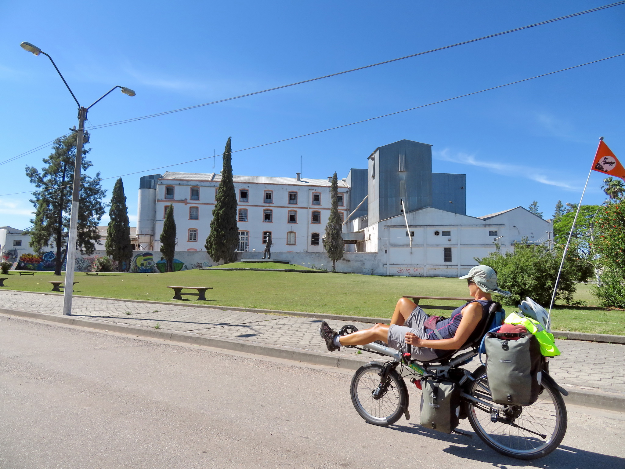 Arrivés à la petite ville de Fray Bentos vers 13 heures, nous passons à l’office de tourisme pour nous renseigner sur les heures d’ouverture et de visite du musée de la révolution industrielle, qui est la raison pour laquelle nous sommes venus ici. C’est une ancienne usine de produits à base de viande de bœuf, particulièrement les cubes OXO, aujourd’hui un musée et inclus dans l’héritage industriel de l’UNESCO. Nous apprenons que la visite guidée a lieu à 15 heures, il commence donc une course contre la montre pour arriver à trouver un hôtel, faire la lessive et manger, tout ça en 2 heures. Nous avons la chance de trouver une chambre dans l’hôtel le moins cher de la ville, où la propriétaire nous propose tout de suite d’utiliser sa machine à laver. Nous arrivons donc à 15h10 au musée et pouvons encore rejoindre la visite guidée – heureusement, car sans la visite le musée n’aurait pas vraiment valu la peine. Nous passons le reste de l’après-midi dans la cour ombragée de l’hôtel à nous reposer.