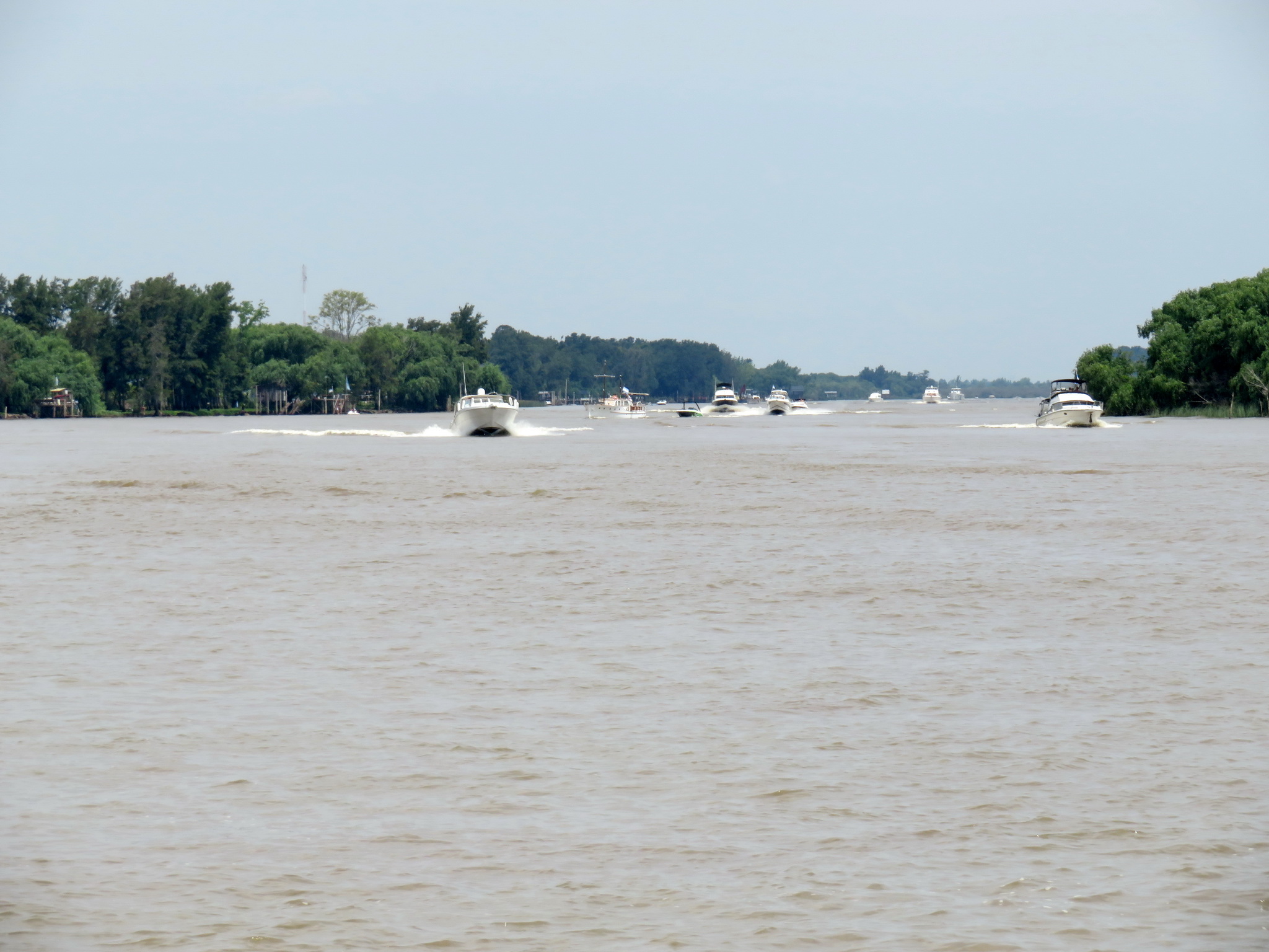 Le lendemain nous passons la matinée à l’hôtel, puis partons prendre le bateau dans le petit port de Carmelo. Nous chargeons nos vélos sur le bateau sans problème et passons le contrôle des passeports – nous voici déjà sortis de l’Uruguay. La traversée dure deux heures et demi et est assez sympathique, sur le large Rio Uruguay et entre plein de petites îles. Puis nous entrons dans un système de fleuves plus étroits, prisés des petits bateaux privés et yachts en ce dimanche ensoleillé. La rivière est bordée de maisons et villas, et Tigre, où nous débarquons, ressemble à un parc d’attraction géant. On dirait que toute la classe moyenne de Buenos Aires vient passer le dimanche ici. Nous avons encore la douane argentine à passer – nous nous sommes rendus compte sur le bateau que les règles d’importation d’aliments sont très stricts, pour des raisons « agro-sanitaires ». Et effectivement, nos bananes sont détectées dans le scanner et il faut les abandonner (ou vite les manger dans le poste de douane), ainsi qu’un reste de miel (j’ai réussi à sauver la plus grande partie de miel car il était bien caché sous la farine… chuuuut … heureusement que la douanière n’a pas été trop stricte).