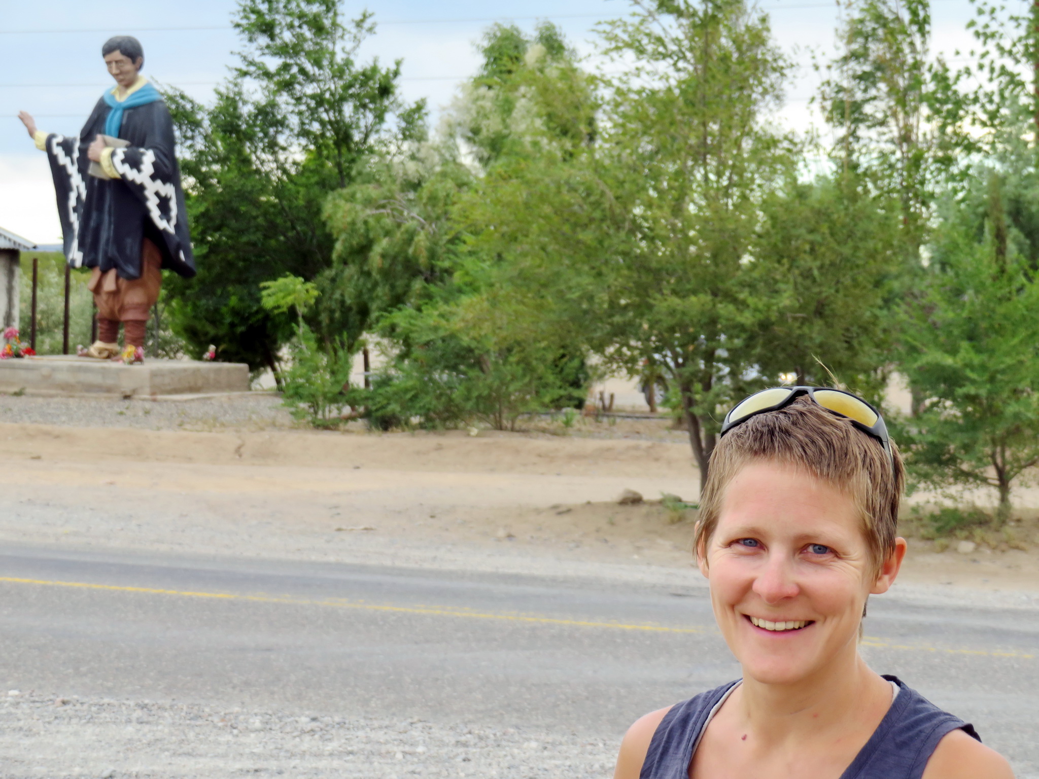 A notre arrivée à la petite ville de Cutral Có, en début d’après-midi, on a le grand raz-le-bol. On aimerait une route où on peut juste rouler tranquillement, sans continuellement devoir faire attention, sans les klaxons (utilisés pour nous « dire bonjour » mais tellement désagréables), et sans les gens qui nous prennent tout le temps en photo depuis leur voiture mais ne nous respectent pas en tant que cyclistes. On se pose dans un petit parc pour manger et respirer un peu. Puis on traverse le centre-ville (qui est « mort de sieste ») et on se pose dans un café avec Wifi pour décider de la suite. Notre fatigue et les prévisions du vent décident pour nous: nous allons rester ici la nuit. C’est à ce moment qu’un monsieur vient nous parler. Il s’appelle Juan et parle un peu portugais, ayant travaillé pendant des années au Brésil dans le forage pétrolier. Il veut d’abord nous amener à la municipalité, puis à l’office de tourisme, car il nous dit que chaque municipalité en Argentine est obligée de loger n’importe qui pour trois jours et qu’ils auraient des chambres. Mais le 26 décembre, cela s’avère difficile, même en Argentine.