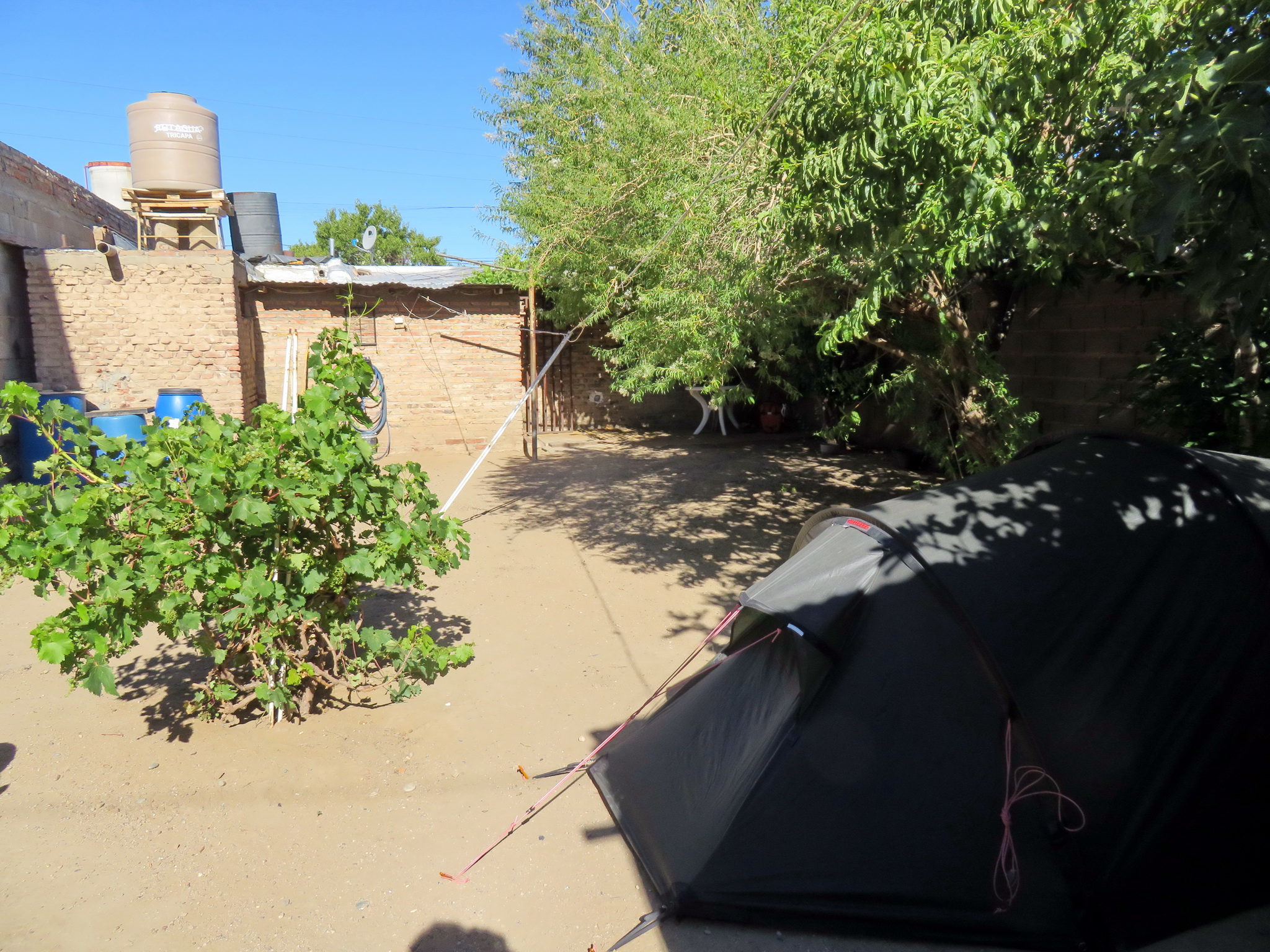 Après quelques tours dans sa voiture, il décide de nous inviter à loger chez lui. On peut monter la tente dans la cour derrière sa maison, prendre une douche, et utiliser sa maison comme on veut. Il nous présente sa femme Norma qui tient un petit magasin à côté de la maison. Les deux sont adorables, ils parlent beaucoup et Norma oublie sans arrêt nos prénoms (elle n’arrête pas de m’appeler « Anita »), mais ils nous préparent un délicieux dîner de poulet et salades, dont une salade avocat-concombre-coriandre que nous ferons encore plusieurs fois plus tard dans notre voyage! Vu les horaires argentins, on se couche à minuit, bien plus tard que d’habitude.
