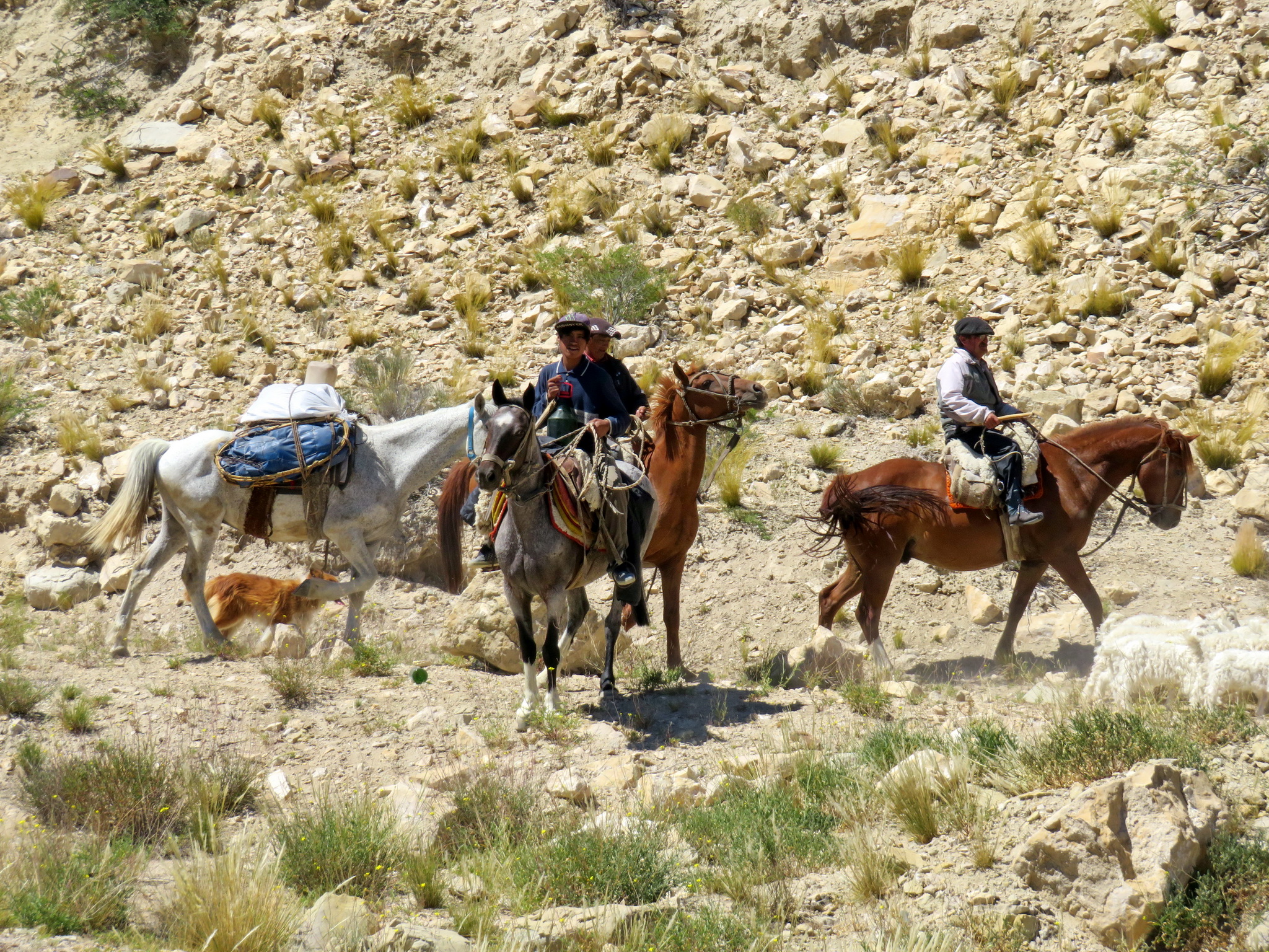 Et la région n’est de loin pas aussi vide que la Pampa. Il y a régulièrement des maisons entourées d’arbres, et quelques-unes fonctionnent en tant que magasin où nous achetons des boissons et remplissons nos bouteilles d’eau. Il y a même des rivières, la plupart ne portent pas beaucoup d’eau, mais elles apportent un peu de verdure dans le paysage. Il y a aussi des communautés indigènes, comme celle qui garde des moutons.