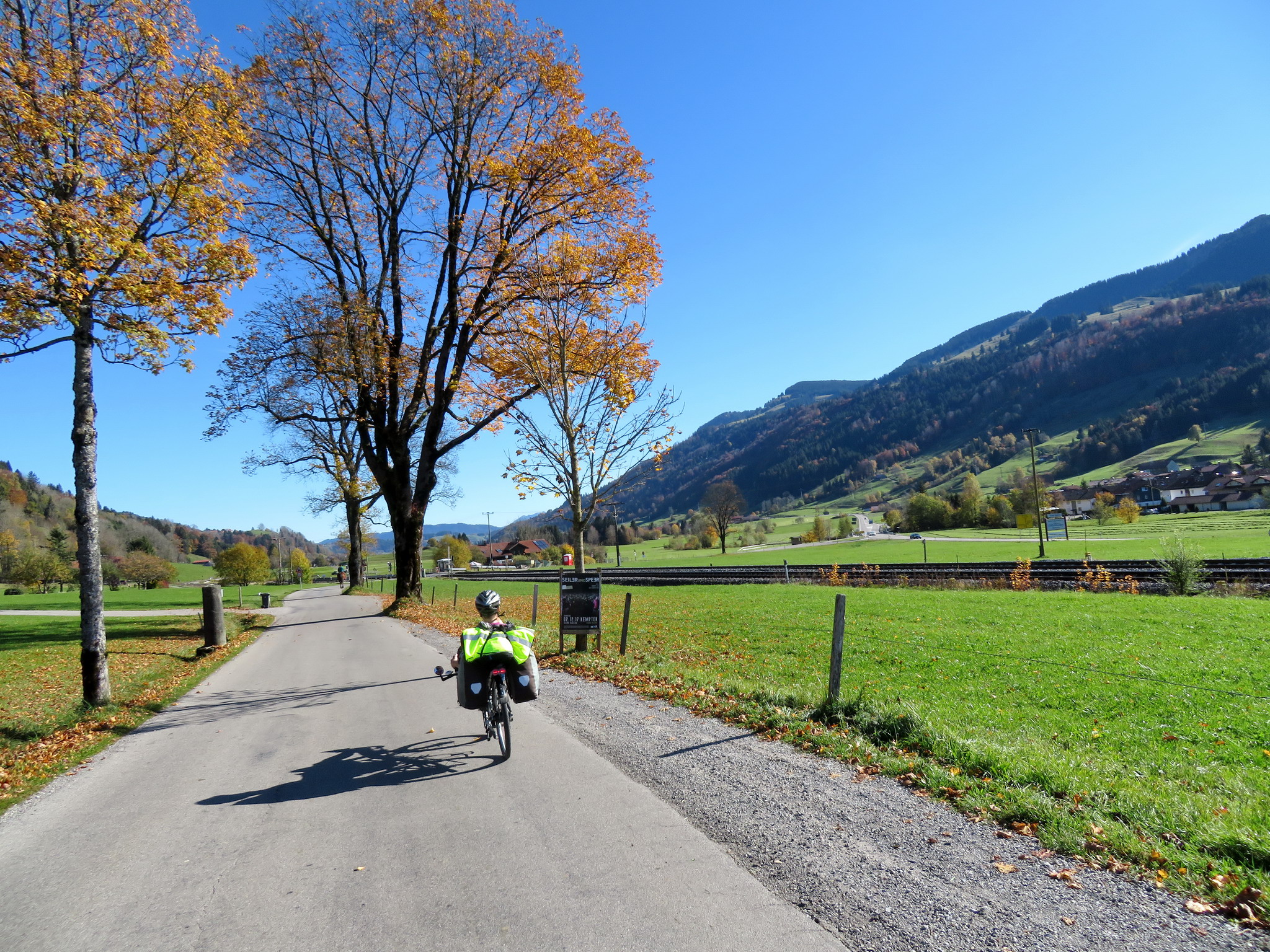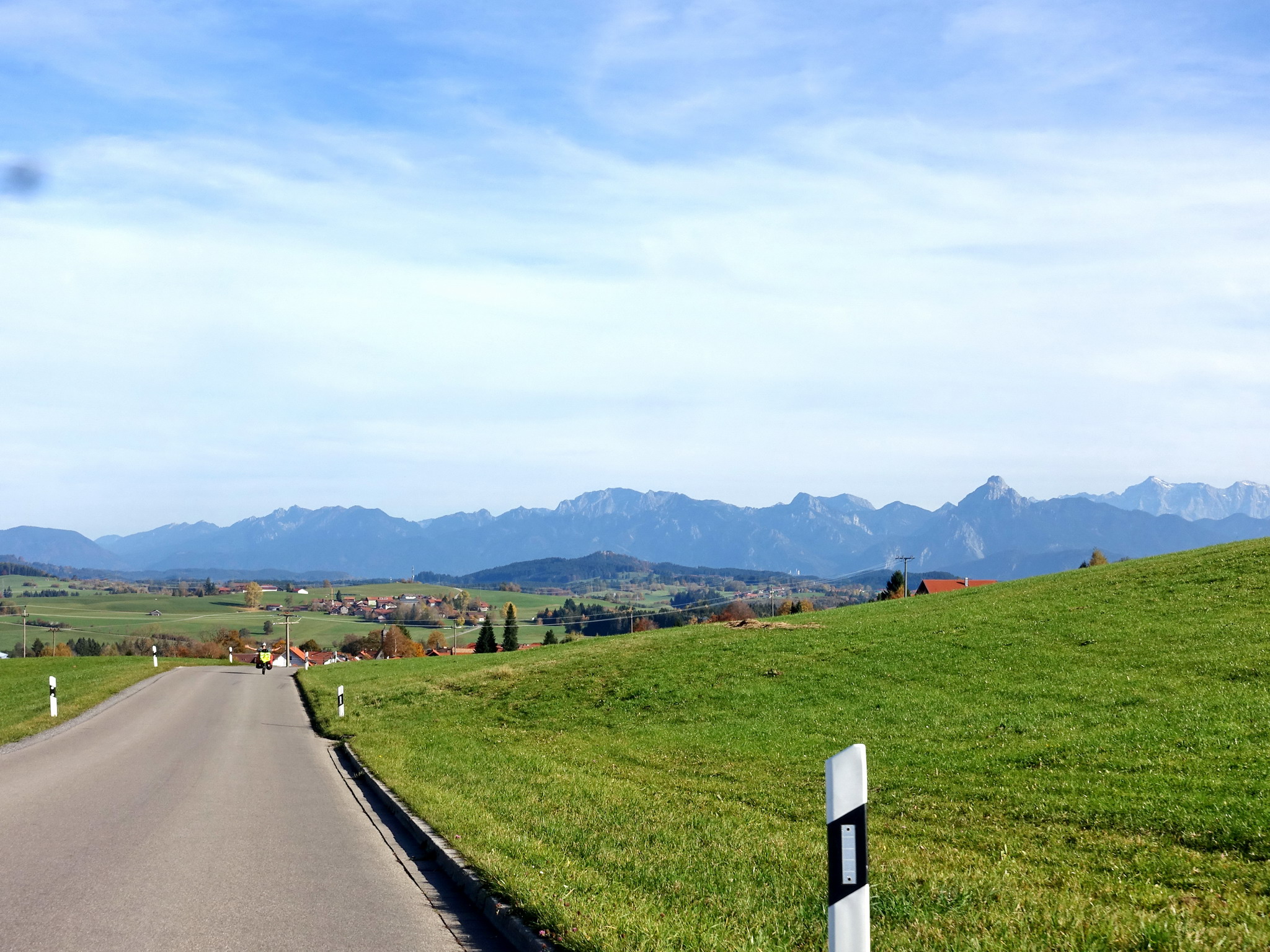 So, we started off by following a hiking trail, then a mountain road that went steeply uphill before diving down into Germany, where we joined the Bodensee-Königssee cycle route. We followed the route – with a few variations – until Pfronten, by the border to Austria. On the map, this stretch had looked quite flat to me, but we sooon realized that there’s nothing flat in this part of the world. We had to scale back our expected daily distances…