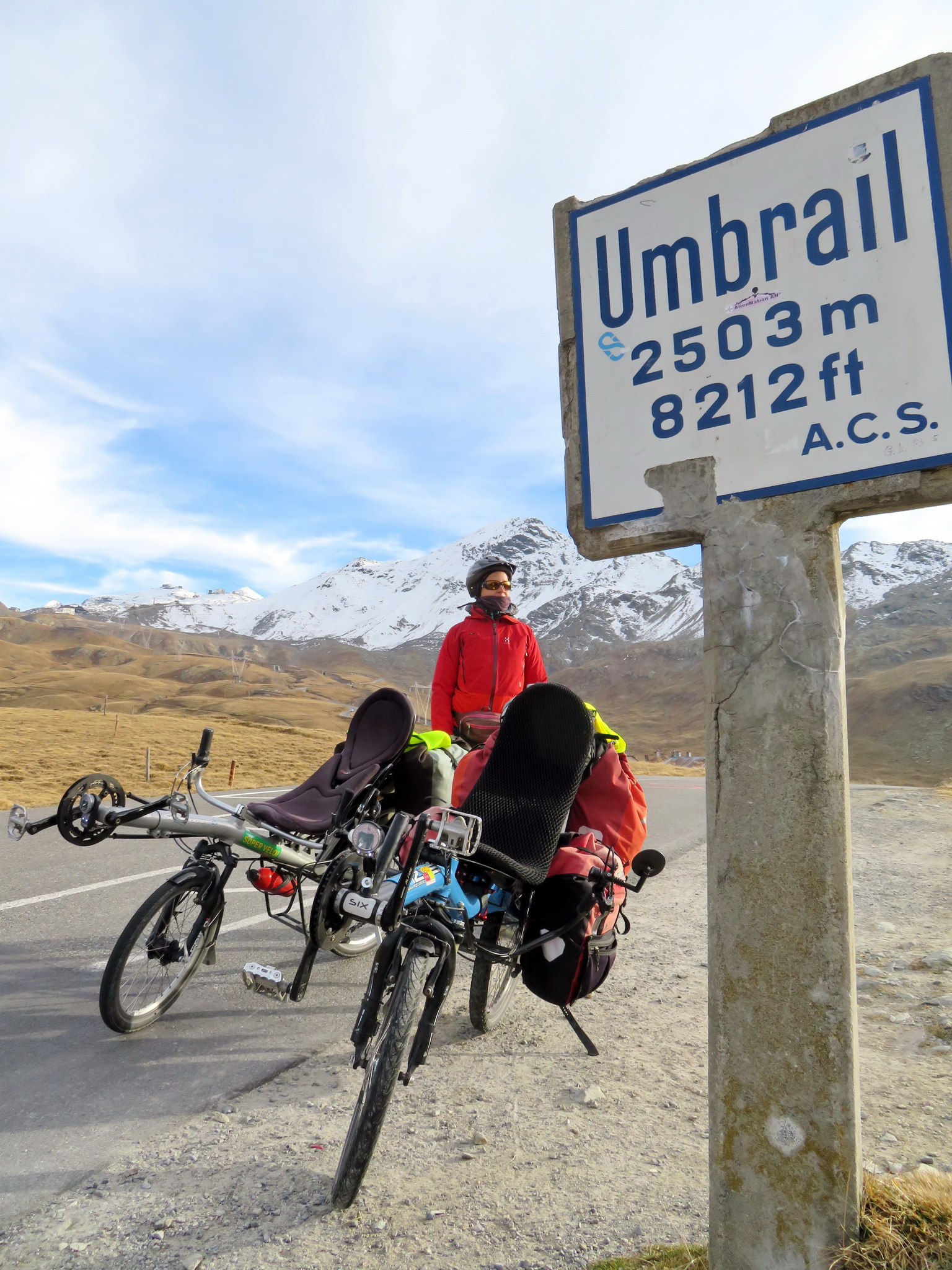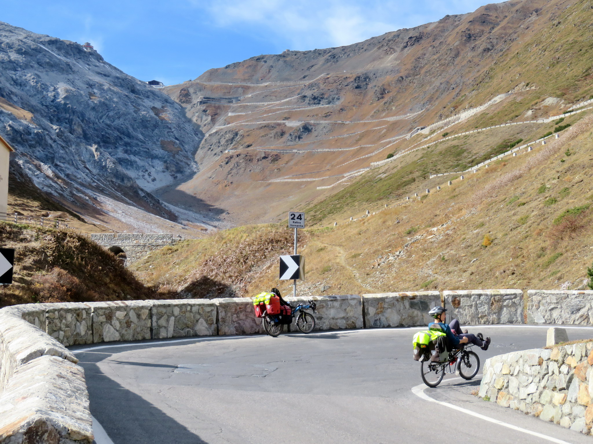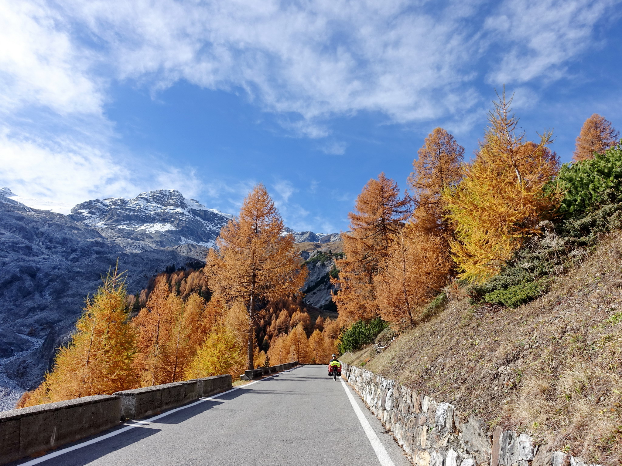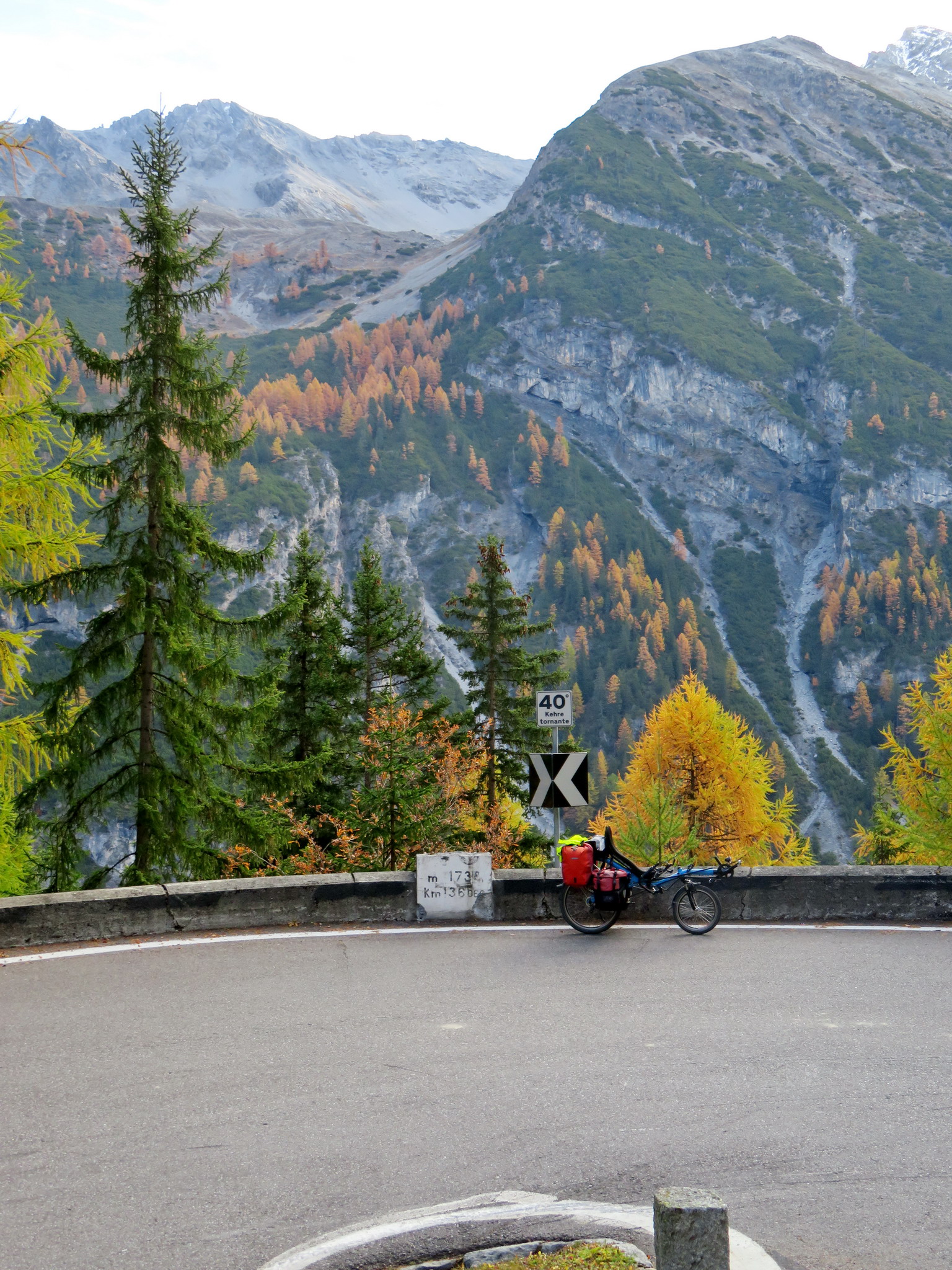 This October we spent a few days in Austria on a long-planned family holiday. As this included crossing all of Switzerland, we thought we might as well continue the vacation a bit longer and do a short cycle tour from there. We had a week to spend, and we ended up cycling in four countries (Germany, Austria, Italy and Switzerland) and over four mountain passes (no, actually, five). We went from glorious autumn weather to the beginning of winter. The trip was short (too short!), but it gave us back a bit of the cycle touring feeling we had been missing since coming back home last June.