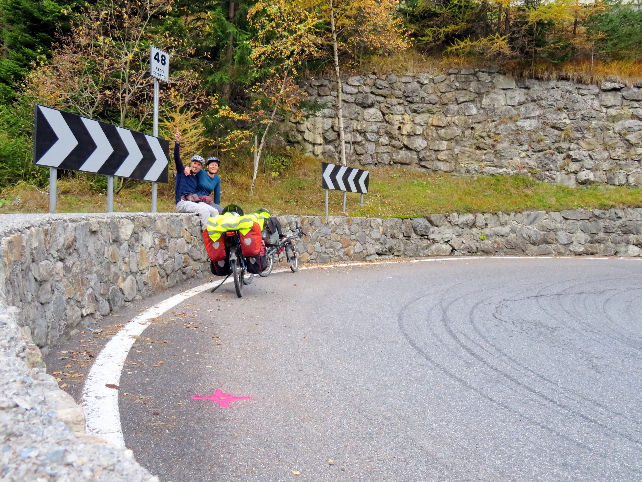 This way, we can at least say that we cycled all the hairpin bends in one day! The road up to the pass has 48 turns and they’re all numbered. Not sure if this helps psychologically, but at least it makes you feel that you’re progressing (albeit very slowly).