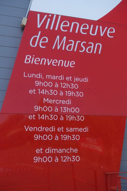 Nous sommes devant ce grand Carrefour (pas une petite épicerie de village). Nous avons pu acheter du pain le matin, mais pas croisé d’épicerie pour acheter du fromage ou autre chose à manger avec le pain. Nous avons faim et une seule envie, de nous arrêter et de manger.